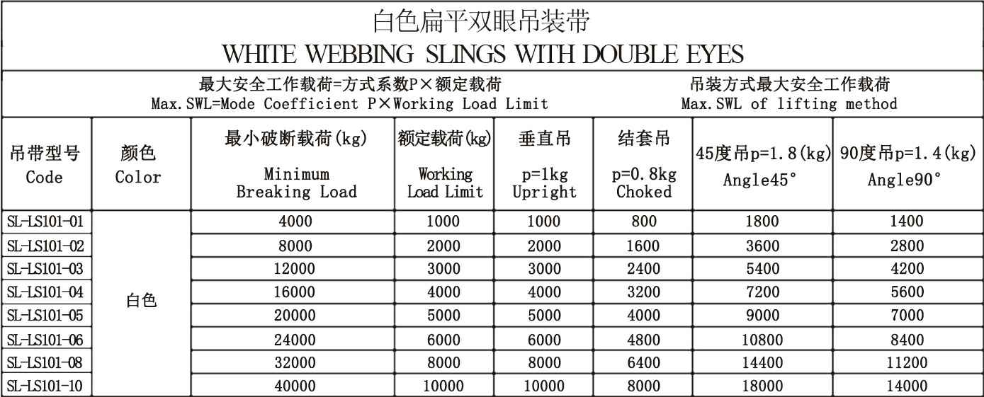 白色扁平双眼吊装带